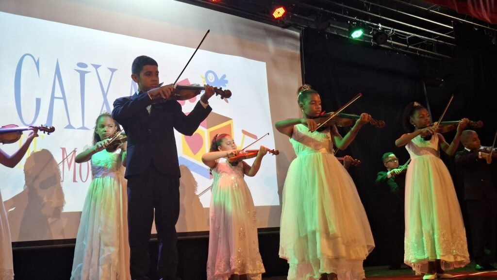 Dez alunos da Escola Municipal Eraldo Mussi, no bairro Malvinas, em Macaé, no Norte Fluminense, estão tendo a oportunidade de aprender música e violino por meio do Projeto Social Caixa de Música. As aulas são ministradas pelo professor Hélio Junior, mestre em Música, que conduz o trabalho com foco na formação artística, disciplina e desenvolvimento social das crianças.